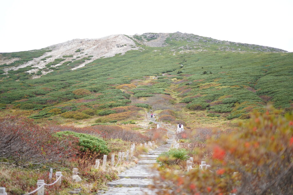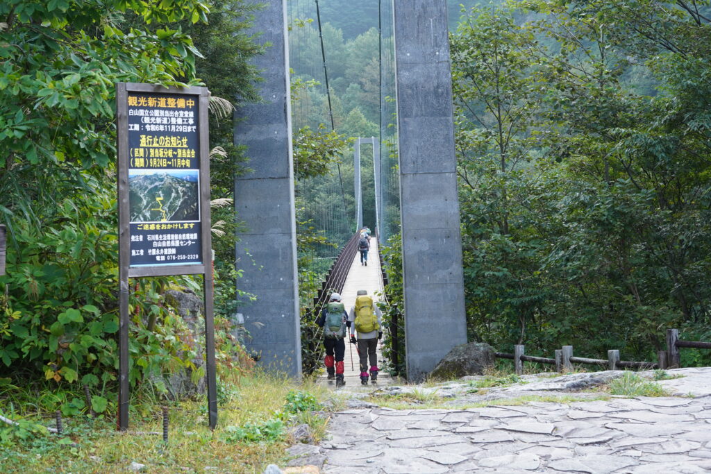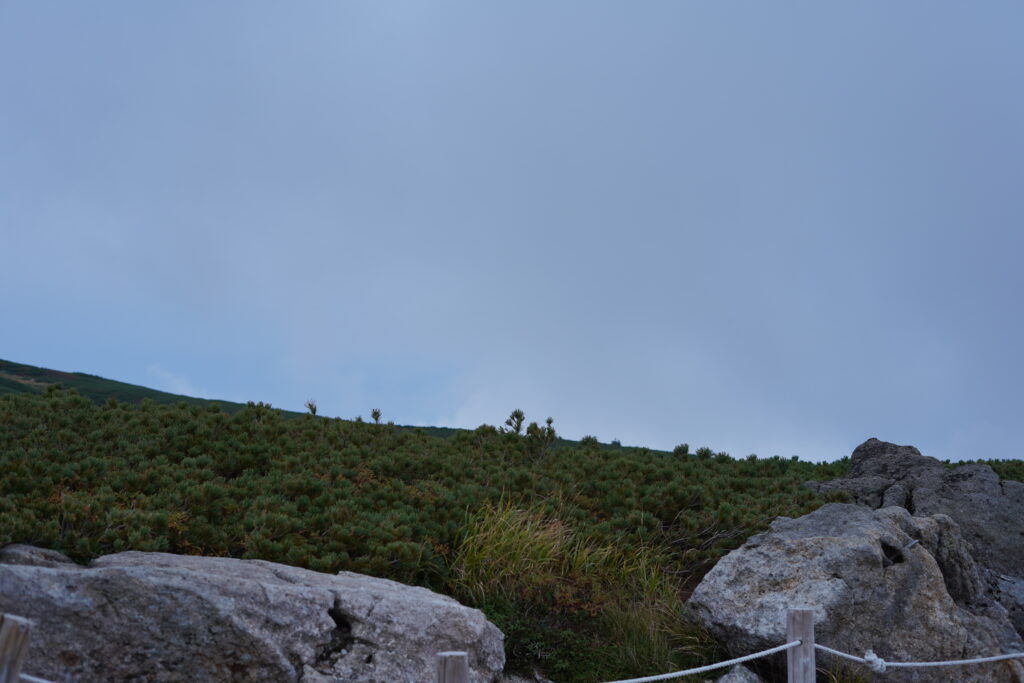 初めての白山へ登って来ました。コロナも明けた昨今、晴れた2連休というのは意外と少なく、ずっと微妙な雨予想だったのが、前日には何とか登れそうな予報になりまして、決行。日本の天気というのはご存じ異常な状態で、半月程前のお盆に立山登山した時はあまりの暑さに登山引退を考えました。下界と大して変わらないうえ日差しは強く。今回は基本曇り空でガスも多く、しかし、暑すぎるのと比較すると幸せな気持ちになりました。バスで登り口まで移動し、登山開始。今回は山小屋迫なので荷物も幾分軽めです。